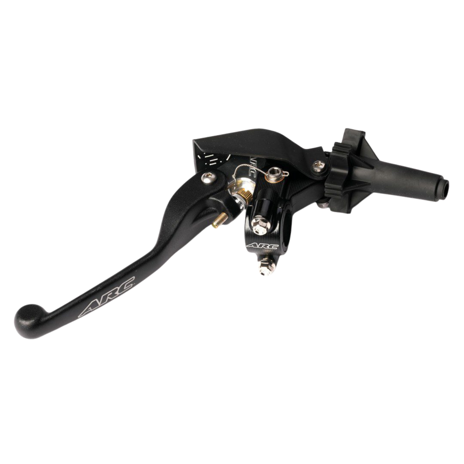 The RC-8 perch includes the legendary ARC folding/adjustable lever. The lever uses an "external pivot" that has replaceable bushings in the perch. This means NO up and down play in the lever. There is a nylon sleeve on the handlebar that helps the perch rotate in a crash preventing damage. The quick adjust is 1/8 turn and very easy to access. This perch is made from billet aluminium and CNC machined to produce a factory level assembly for the common rider. This is the exact perch that has won many national, world and MXoN titles. It is available with an aluminium or composite lever.